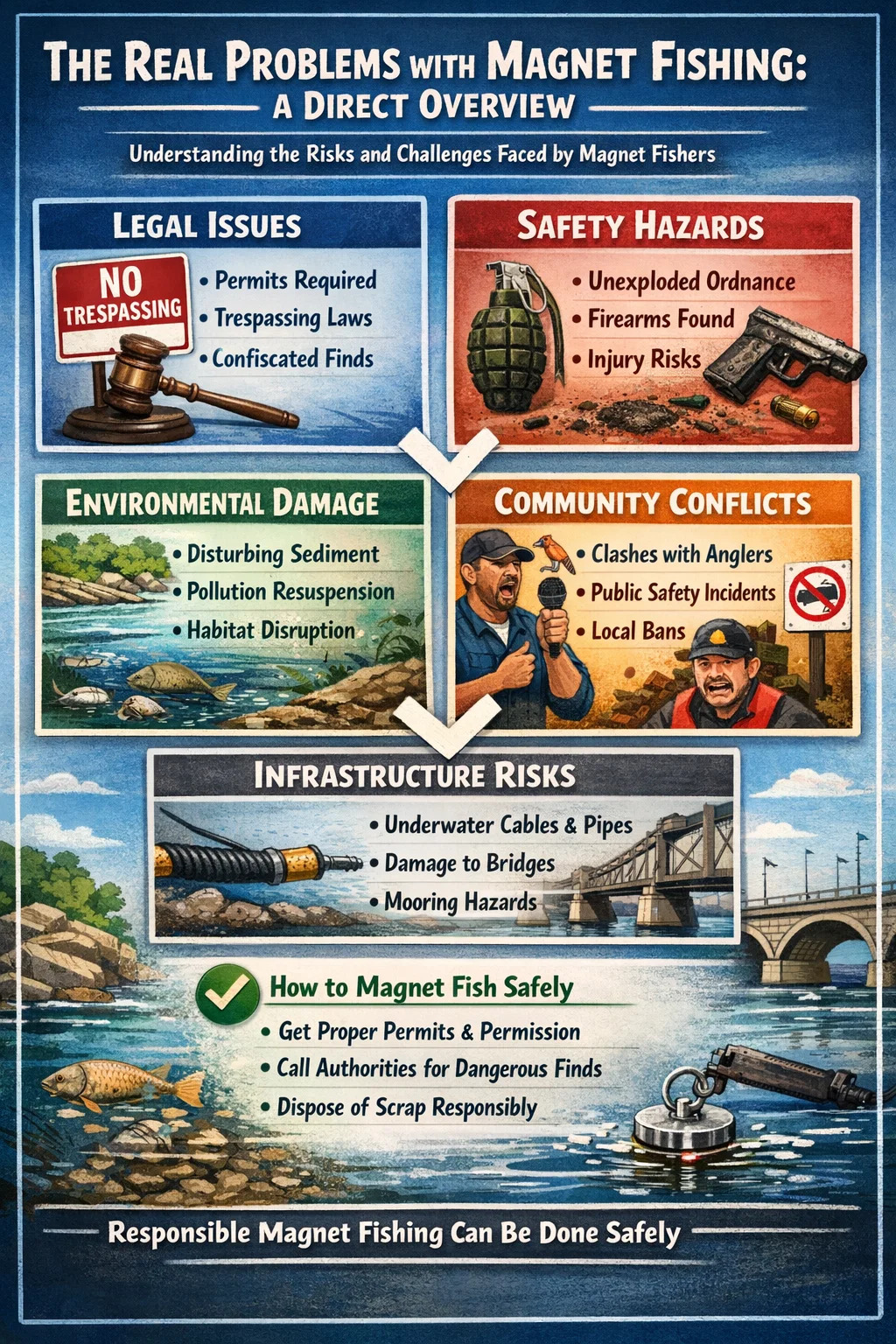 Die actions of a minority of irresponsible hobbyists consistently generate restrictions that affect the entire community. Dies ist eines der frustrierendsten Probleme für erfahrene, verantwortungsbewusste Magnetfischer, die alle ordnungsgemäßen Protokolle befolgen.